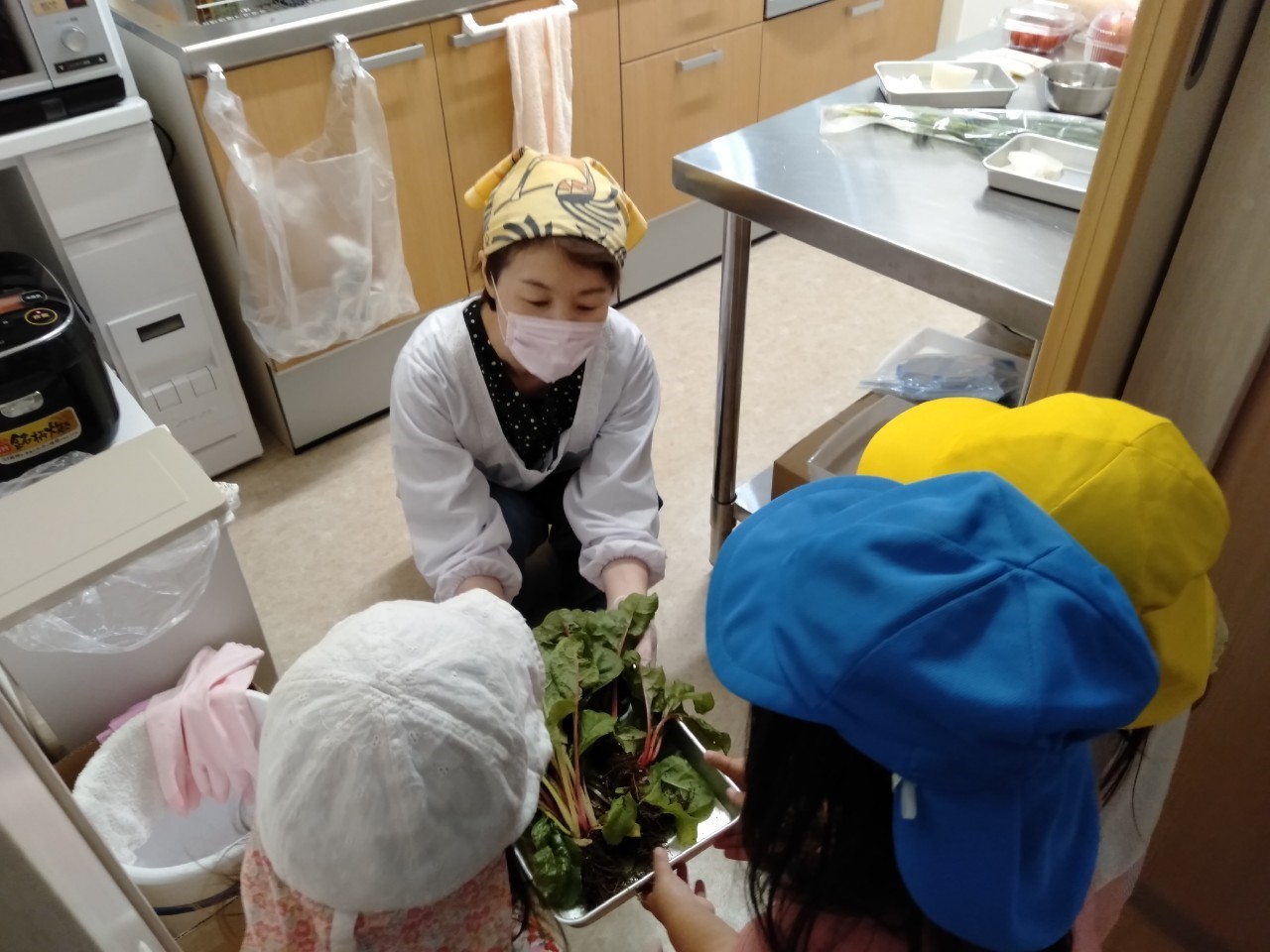 収穫した野菜は調理員さんに自分たちで持っていきます