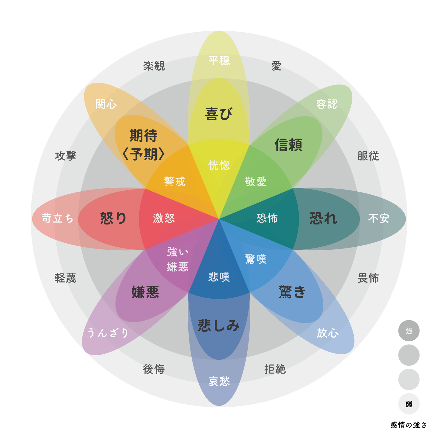 きもちのオノマトペカードはプルチックの感情の輪を背景理論として作られています。