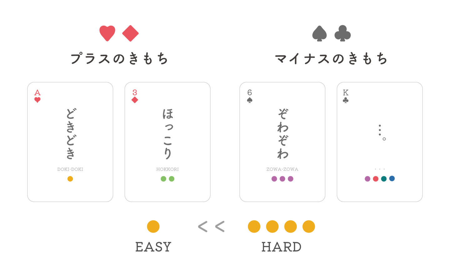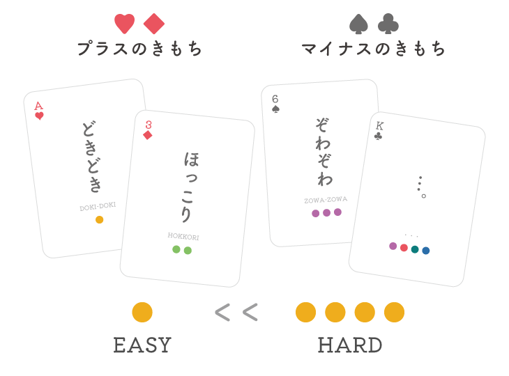 ♥◆=ポジティブなきもち ♣♠︎=ネガティブなきもちと捉えられるものを分類しているので、